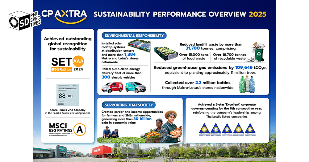 These recognitions reflect CP AXTRA’s ability to translate ESG commitments into measurable business outcomes, from emissions reduction and clean energy adoption across its value chain to inclusive economic growth through over 30 billion baht generated for farmers and SMEs. The Company continues to align long-term business growth with strong governance standards, while advancing toward its Net Zero ambition by 2050.