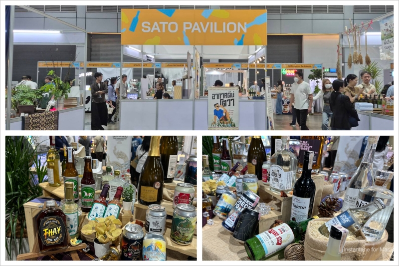 เรื่องราวของข้าวในงานนี้ไม่ได้หยุดอยู่แค่บนจาน แต่ออกเดินทางต่อไปในแก้วที่ “SATO Station” หรือโซน ศาสตร์โทพาวิลเลียน ซึ่งรวมผู้ผลิตสาโทและสุราชุมชนจากหลายพื้นที่