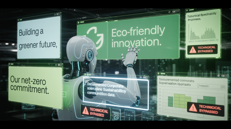 ความเสี่ยงที่วงการความยั่งยืนไม่ได้พูดถึงมากพอ คือ การฟอกเขียวด้านสิ่งแวดล้อมด้วยอัลกอริทึม คือเมื่อเครื่องมือ AI ที่ได้รับการฝึกฝนจากข้อมูลการสื่อสารด้านความยั่งยืนขององค์กรมานานหลายทศวรรษ สร้างภาษาของการหลอกลวงขึ้นมา เป็นคุณสมบัติที่เกิดขึ้นเองจากข้อมูลการฝึกฝน