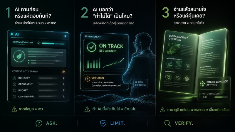 เมษายน 27,2026…เมื่อ AI ที่เราไว้ใจ กลับสร้างคำตอบที่ “ดูดีแต่เปลือก” จากข้อมูลเก่าในอดีต จนเกิดเป็นอาการ “ฟอกเขียวด้วยอัลกอริทึม” โดยไม่รู้ตัว มาเจาะลึกบทเรียนจาก UN Global Compact และวิธีใช้ AI ให้จริงใจ ไม่ตกหลุมพรางภาษา CSR ที่ว่างเปล่า
